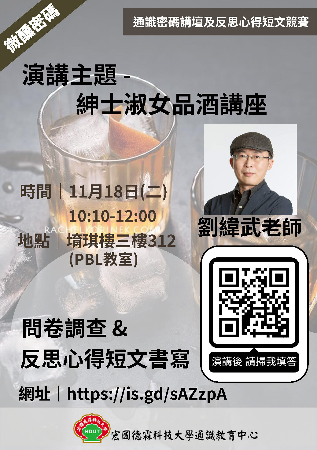 通識微醺密碼講壇活動-「紳士淑女品酒講座」-餐旅系劉緯武老師